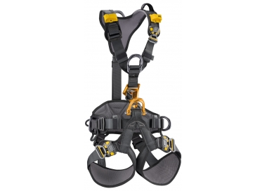 Construcción ultraconfortable: - Cinturón y perneras semirrígidos y anchos para una sujeción excelente; preformados y acolchados con espuma perforada y transpirable para una mayor comodidad en suspensión. - Tirantes acolchados y separados para limitar el rozamiento en el cuello. Cuando se lleva carga en el cinturón, los tirantes soportan esta carga y la reparten en los hombros. - Puntos de enganche laterales textiles con insert plástico, que aseguran una conexión fácil del equipo conservando al mismo tiempo un peso y un volumen limitados.